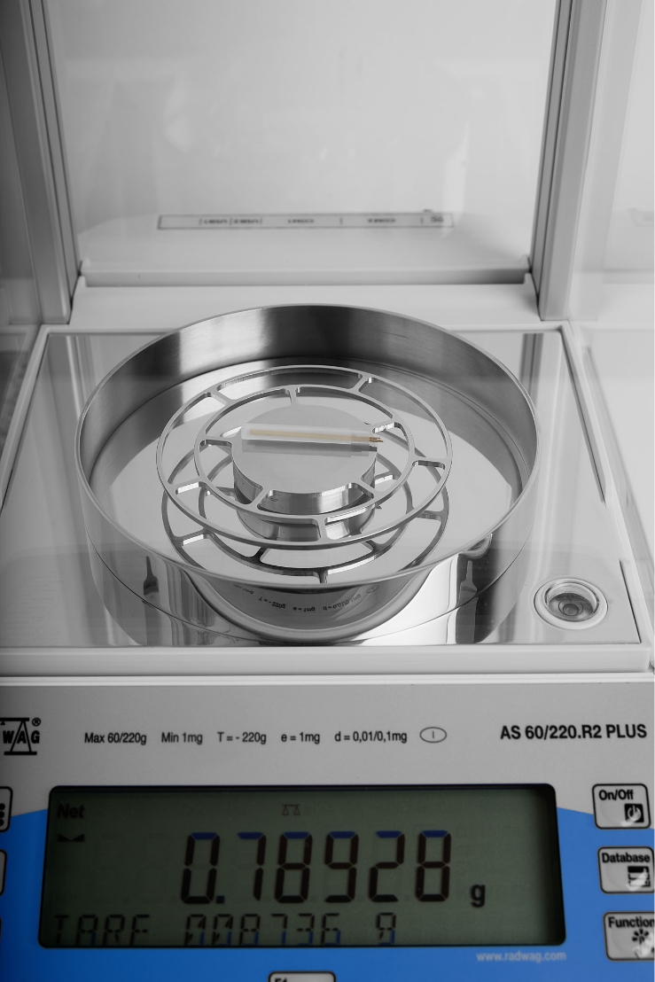 - Pesée de pièces (axes/tiges…) avec une précision de 0.01 mg